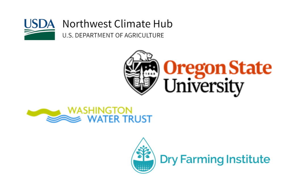 Our team includes: American Farmland Trust, the Dry Farming Institute, Oregon State University Extension, the Washington Water Trust, the USDA California, Northwest Climate Hubs, and Oregon Climate and Agriculture Network. This project is supported by the USDA National Institute of Food and Agriculture’s Extension, Education, and USDA Climate Hubs Partnership program (Award #2023-67019-39349). This NIFA program is focused on providing effective, translatable, and scalable approaches to address climate change through regional partnerships.
