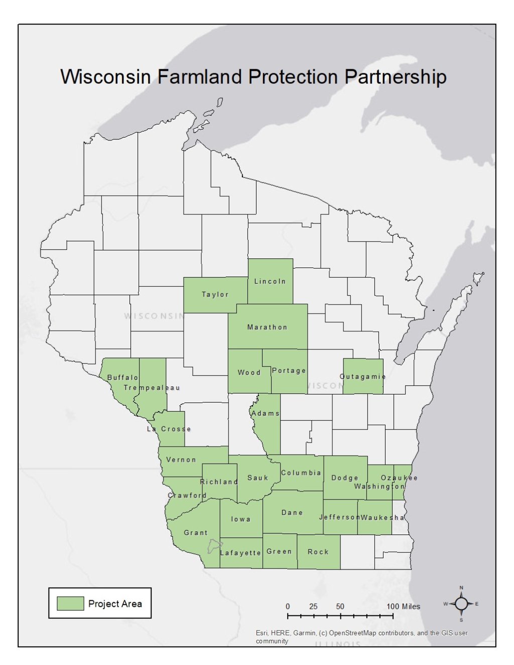 The Wisconsin Farmland Protection Partnership Project addresses the need for increased agricultural conservation easement funding in the state. The partnership, funded by the USDA Natural Resources Conservation Service (NRCS) Regional Conservation Partnership Program, is slowing the loss of vital agricultural land by accelerating permanent Wisconsin farmland protection statewide.